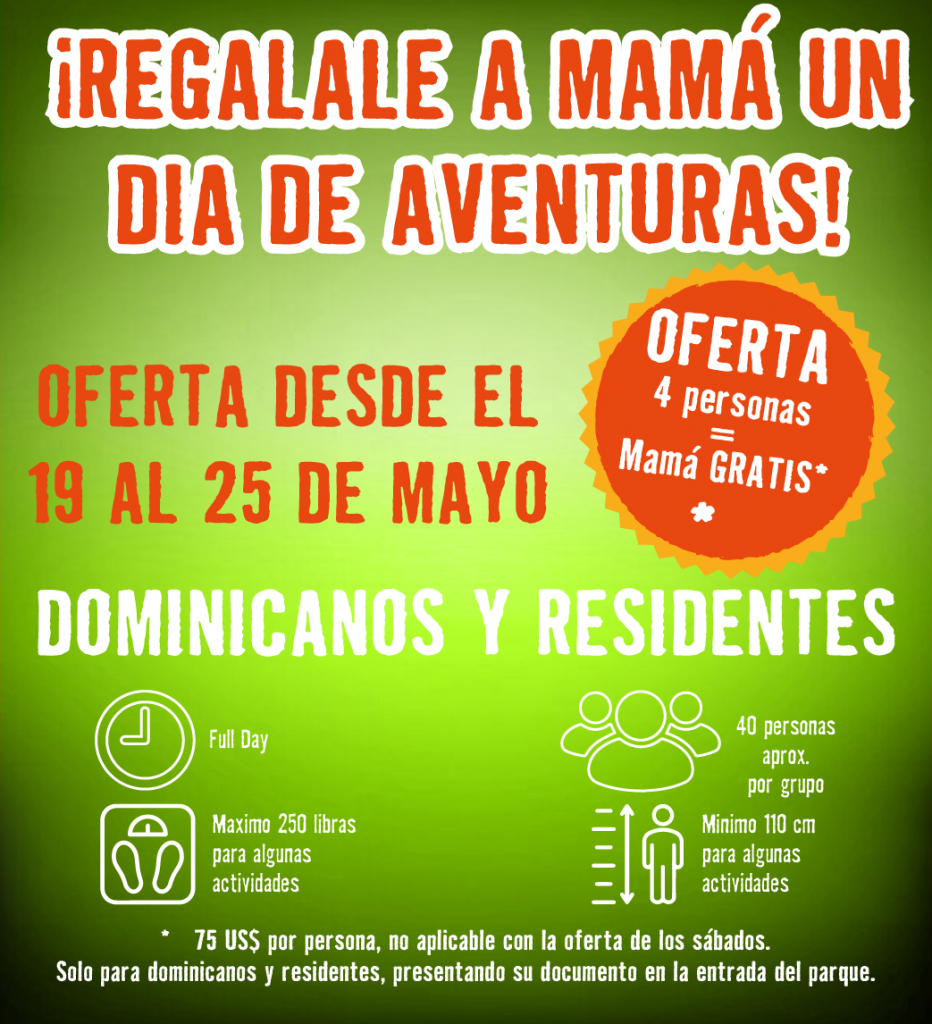 El precio es de $99 por todas las actividades. ¡Sé que es una oferta increíble! Esto incluye la tirolesa, paseo en buggy, paseo a caballo, salto rápido, nadar en el río, teleférico, safari local y almuerzo en nuestro increíble buffet dominicano.