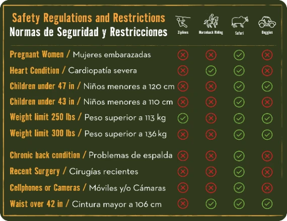 The Hacienda Park VIP Tour is a unique and exclusive experience with limited availability, offering personalized service to make your visit unforgettable. In addition to the 7 standard activities, the VIP program includes a later departure time, private transportation with a minibar, complimentary drinks and snacks, private and exclusive tours, a complete photo package, the ability to change and repeat activities, and more. We look forward to welcoming you!