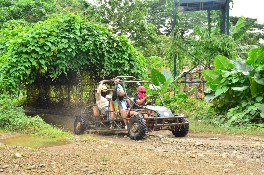Otra actividad imprescindible es el recorrido en buggies todo terreno. Estos vehículos permiten adentrarse en los caminos rurales de la selva, atravesar charcos de lodo, cruzar puentes rústicos y descubrir áreas ocultas entre la vegetación. Esta experiencia es ideal para quienes buscan adrenalina y una forma divertida de explorar.